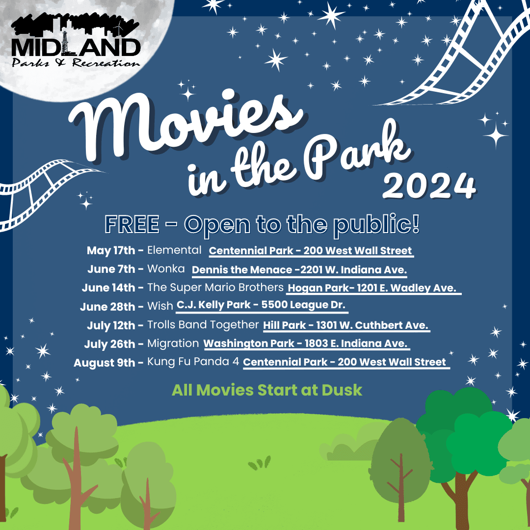 CITY OF MIDLAND PARKS AND RECREATION WILL HOST ITS ANNUAL 2024 MOVIES IN THE PARK