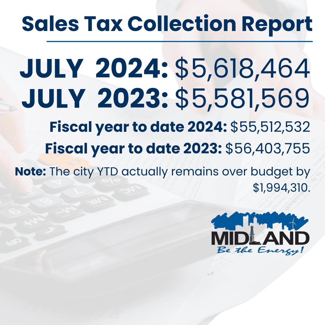 MIDLAND, TEXAS -- Sales tax collected inside the City of Midland again remains ahead of the Fiscal 2024 budget.